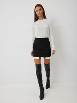 Юбка А-силуэта, длиной миди. По переду заложена складка. По бокам обработаны карманы-хулиганы, подкладка из подкладочной ткани. Верхний срез обработан обтачкой. Задняя часть с центральным швом и застежкой на молнию (металл №5). На задних половинках застрочены вытачки. Нижний срез подклеен.