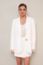 Жакет женский, выполнены из трикотажного полотна велюр с пайетками. Жакет прямой, свободный, укороченный. Горловина V-образной формы. Рукава втачные, длиной до локтя. Жакет на подкладке из сатина. По переду завязки из репсовой ленты на бант.