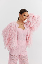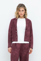 Жакет женский прилегающего силуэта. Горловина округлой формы обработана обтачкой 25мм в готовом виде из основного полотна. Рукав втачной, длинный. Жакет с центральной застежкой с петлями и пуговицами 10мм. Низ изделия и рукавов обработаны швом в подгибку.