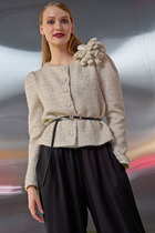 Силуэт прямой и свободный, рукава длинные втачные, линия плеча немного спущена. Центральная застежка на пуговицы, воротник отложной. Низ изделия и низ рукавов застрочен швом в подгибку.