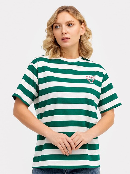 Совместные покупки Магнитогорск Женская одежда Футболки — Mark FormelleФУТБОЛКА ЖЕНСКАЯ 112678 112678 молочно -зеленая полоска 75368