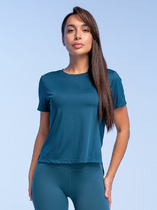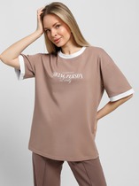 Футболка женская свободного силуэта из трикотажного кулирного пототна. Горловина круглой формы, с широкой обтачкой из рибаны. Плечо спущено, пройма углублена. Рукав втачной, длиной по локоть. Подгибка низа и рукавов широкая.