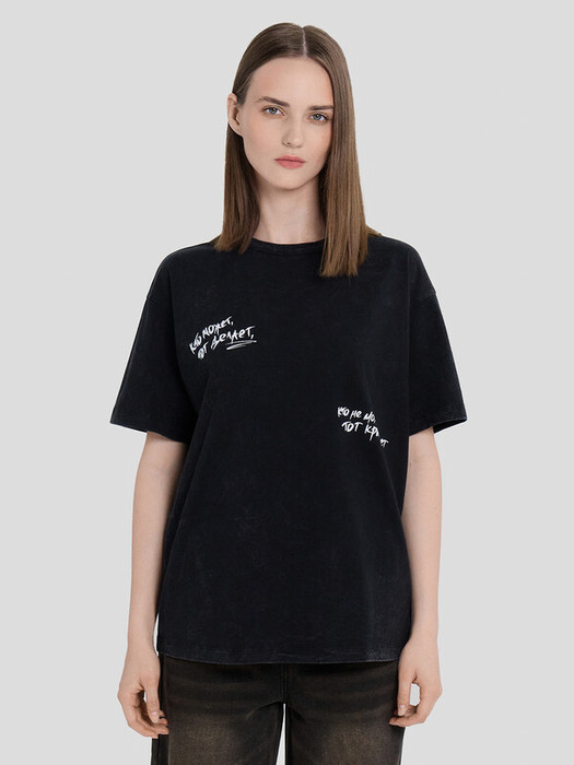 Mark FormelleФУТБОЛКА ЖЕНСКАЯ 112934 112934 ACID WASH черный +печать 126200