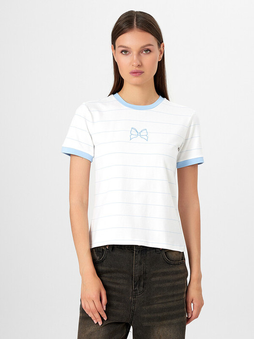 Mark FormelleФУТБОЛКА ЖЕНСКАЯ 112936 112936 голубая полоска на белом 128854