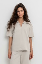 Футболка прямая, свободная.Горловина округлой формы, обработана обтачкой из основного полотна.