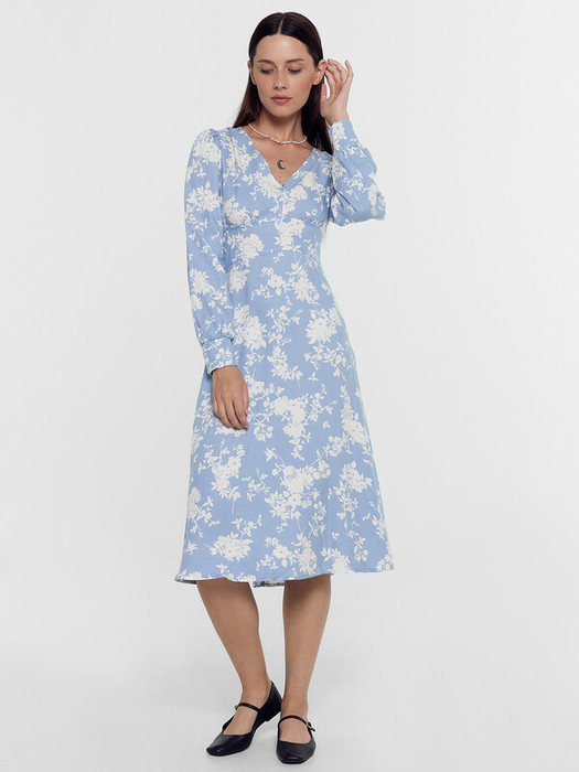 Совместные покупки Магнитогорск Женская одежда Платья — Mark FormelleПЛАТЬЕ ЖЕНСКОЕ 152512 152512 цветочки на пыльно -голубом 1050