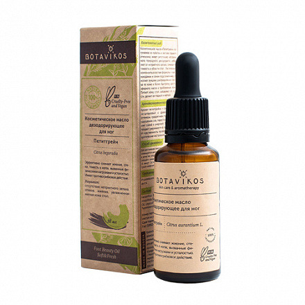 Косметический уход: эфирное масло петитгрейна, получаемое из побегов и листьев горького апельсина, имеет репутацию натурального природного дезодоранта, избавляет от неприятного запаха, снижая потливость в области стоп. Эффективно снимает жжение, отёки, тяжесть в ногах, вызванные физическими нагрузками и усталостью. Имеет противогрибковое действие.