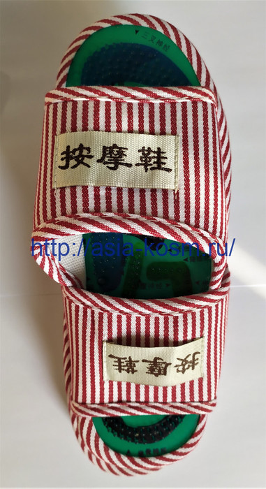 Женские размеры 37-39Массажные тапочки— это терапевтический комфортный массажер нового поколения — рефлексотерапия стопы в домашних условиях в любое время!Тапочки сочетают принципы современной магнитной медицины и китайского лечебного массажа стоп:- в качестве магнитов используются железо-борные пластинки, применяемые в космической навигации и обладающие большой магнитной силой, которая оказывает лечебное воздействие при контакте с энергетическими каналами и биологически активными точками (БАТ) человека, расположенными на стопе;- стельки тапочек обладают «живой подошвой», благодаря особой конструкции, которая создает эффект хождения босиком по крупнозернистому песку.Массаж стоп стимулирует БАТ, улучшает проходимость каналов, усиливает кровообращение, активизирует обмен веществ, регулирует внутреннюю секрецию, балансирует силы Инь и Янь в организме. Стельки в тапочках не промокают, не деформируются, устраняют неприятный запах, не токсичны, выпуклости на стельках различной высоты и конфигурации имитируют точечный массаж, согревают зимой и охлаждают летом, пропускают воздух, дают стопам ощущение комфорта, не раздражают кожу, фильтруют пот, их можно мыть (не замачивать, не применять моющие средства с отбеливающими компонентами).Массажные тапочки - для тех, кто заботится о своем здоровье и о здоровье своих близких, для тех, кто знает и ценит искусство восточного массажа ног. Как известно, ноги - ключ к здоровью всего организма.Массажные тапочки будут каждый день заботиться о Вашем здоровье, добавят Вам жизненных сил и избавят от многих болезней и защитят нервную систему от последствий стрессов.Рекомендации по применению. Начинать носить тапочки нужно от 5 минут в день, постепенно увеличивая этот интервал и количество процедур. Массажные тапочки могут использоваться как домашние тапочки, но не рекомендуются в них непрерывно ходить более 3-х часов.Массажные тапочки в Вашем доме – это рекомендация ортопедов:-комфортный массаж (во время ходьбы собственным весом) всех аккупунктурных точек стопы,-имитация прогулки босиком по крупнозернистому песку в любое время года,-препятствие образованию солевых отложений и появлению «пяточных шпор» и натоптышей,-свободное дыхание кожи стопы,-снятие отечности и усталости, расслабление ног.-стимулирующее воздействие на весь организм,-профилактика плоскостопия.Противопоказания:Массажные тапочки не имеют противопоказаний и рекомендованы ортопедами для постоянного ношения в качестве полноценной замены прогулки босиком на лоне природы в любое время года.Уход за изделием: рекомендуется ручная стирка в теплой воде (30-40 град с небольшим количеством нейтрального шампуня) или протереть ватным тампоном или губкой загрязнившиеся места.