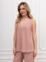 Женская майка на широких бретелях из трикотажа кашкорсе, с большим круглым вырезом. Материал производится из мягкого хлопка, обладает высокой воздухопроницаемостью, превосходно адаптируется к любой фигуре, хорошо сохраняет форму и цвет, подходит для чувствительной кожи. Добавление эластана обеспечивает комфортное облегание. Горловина и пройма окантованы.