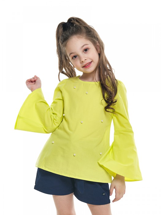 Совместные покупки Магнитогорск Детская одежда Блузки — Mini Maxi Блузка с жемчугом (98-122см) UD 4531-2(2) неон-желт