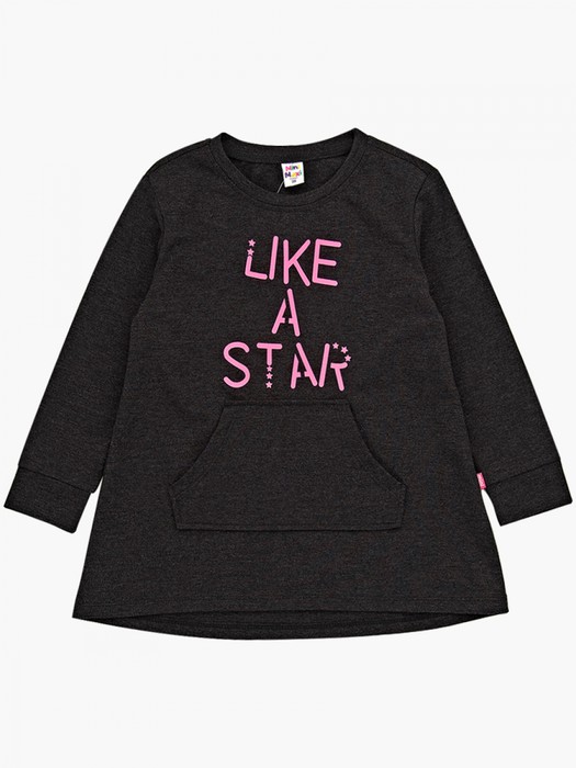 Совместные покупки Магнитогорск Детская одежда Футболки, майки — Mini Maxi Лонгслив с принтом для девочки (98-122см) UD 3873-1(2) черный меланж