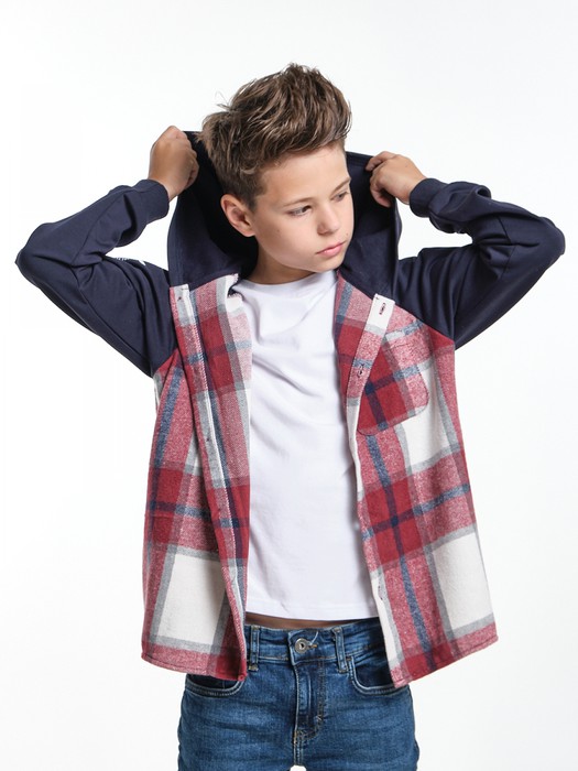 Совместные покупки Магнитогорск Детская одежда Рубашки — Mini Maxi Рубашка с капюшоном (128-146см) UD 7982-1(3) т.син/бордо клетка