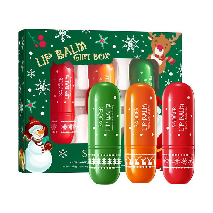 Совместные покупки Магнитогорск Косметика и парфюмерия Прочий макияж — Набор бальзамов для губ Новогодний SADOER, 3 штуки.
