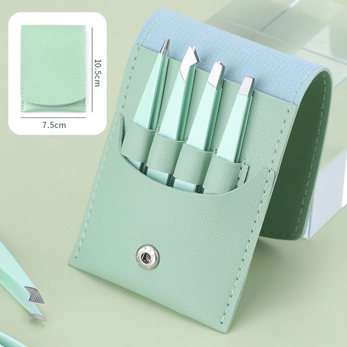 Набор пинцетов для бровей и ресниц 4 шт. в кожаном чехле. Цвет: Мята