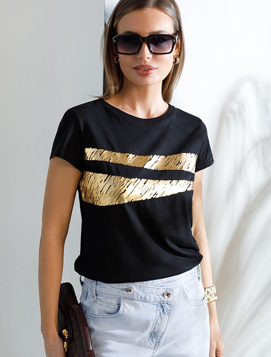 — Нарядная футболка с золотистым принтом