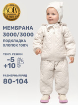 Мембранная ткань это непродуваемый и водонепроницаемый материал, который надежно защищает от ветра и влаги. Благодаря дышащим свойствам мембраны ребенку будет комфортно в любую погоду и он не вспотеет. Ткань обработана снаружи экологически чистым протектором TEFLON для защиты от воды и грязи.