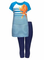 Сорочка женская из вискозного трикотажного полотна с набивным рисунком, слегка расширенная книзу, с короткими втачными рукавами. Полочка с V – образными кружевными деталями по горловине, по низу рукавов кружевные манжеты.