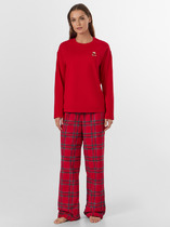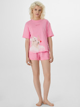 Сорочка женская из трикотажного полотна «кулирка» с набивным рисунком, свободного покроя, слегка расширенная книзу, с короткими втачными рукавами и горловиной овальной формы. Полочка – с отделочной деталью, повторяющей контур горловины, в шве притачивания которой симметрично относительно центра заложены 6 складочек-защипов. Наружный край горловины и низ рукавов обработаны узким кружевом.