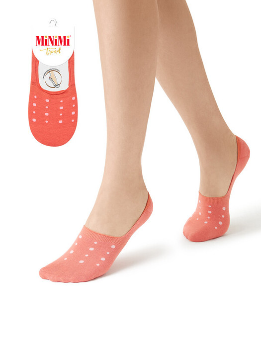 Женские подследники MiNiMi в горошек, укрепленные силиконом. Мягкий и дышащий хлопок в составе обладает высокой воздухопроницаемостью и отлично впитывает влагу, а эластан обеспечивает превосходное облегание. Благодаря специальным силиконовым фиксаторам, подследники плотно прилегают к пятке и не скатываются при ходьбе.