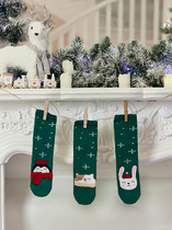 Плюшевые детские носочки в полоску, на носке вывязаны пингвины
