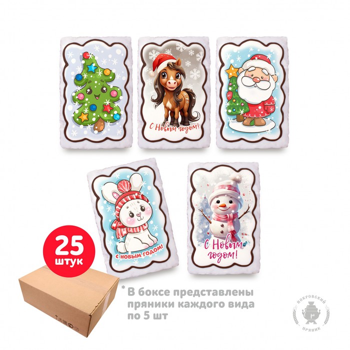 Новогодние расписные пряники 130 грамм, картинки в ассорт.