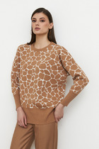 Джемпер свободного силуэта из фактурного эластичного полотна. Втачной длинный рукав. Круглый вырез горловины. Женский джемпер стал незаменимой и популярной разновидностью одежды, которая может применяться буквально во всех случаях жизни.