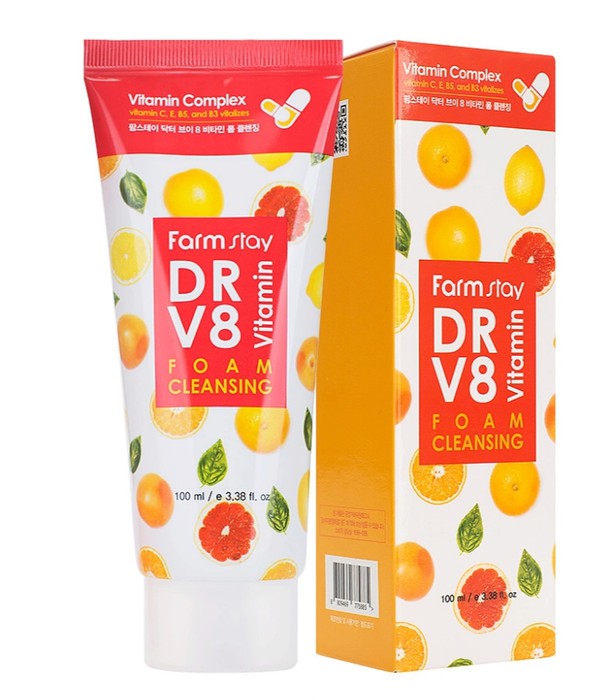 FarmStay DR-V8 Vitamin Foam Cleansing — это пенка для умывания с витаминным комплексом. Она интенсивно очищает кожу, выводит все виды загрязнений, снимает напряжение и заряжает энергией.