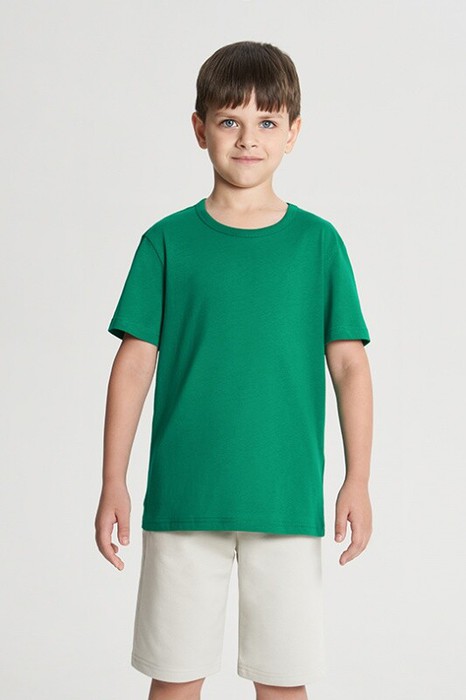 Футболка свободного кроя, втачной рукав. Горловина окантована бейкой из рибаны