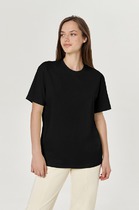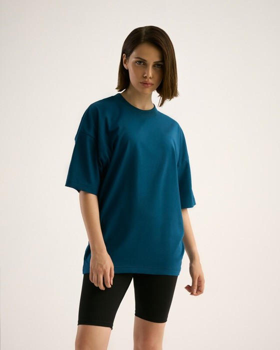 Футболка свободного силуэта. Спущенное плечо. Горловина из двух деталей, из рибаны.