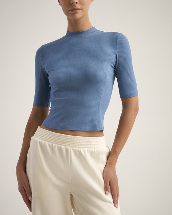 Укороченная футболка, облегающего силуэта. Притачная стойка.