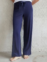 Прямые брюки с поясом на резинке из фактурного трикотажа в рубчик