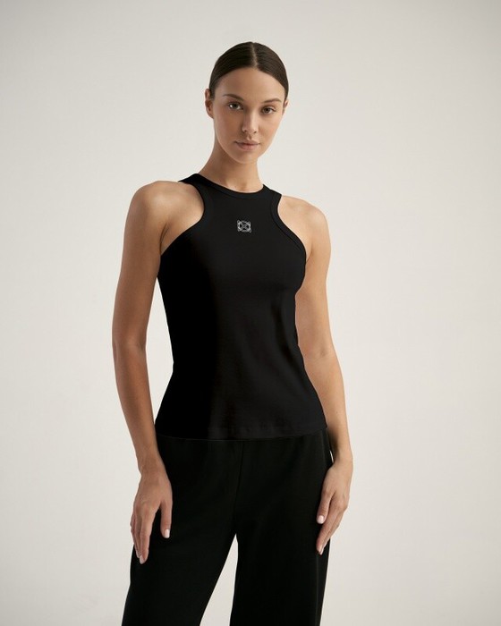 Майка из кашкорсе. Фигурная пройма. Горловина и проймы окантованы.