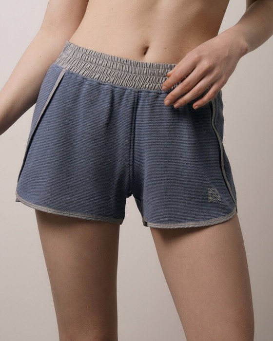 Шорты женские с заниженной талией. Карманы в боковом шве. Пояс отстроченный с резинкой и шнурком внутри.