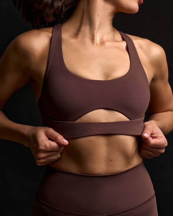 Топ спортивный из бифлекса. Передняя часть лифа из двух фигурных деталей. Все части топа двойные. На верхней передней части лифа по пройме отверстие для установки чашечек.