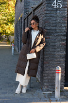 Пальто двубортное на пуговицах из строченой ткани, полуприталенного силуэта. Оригинальности изделию придают фактурные строчки. В комплект входит пояс с фирменной пряжкой. Удобные карманы на пуговицах. Утеплитель холкон (см.описание), плотность 100, длина рукава 64 см.