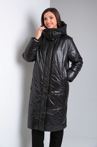 Весеннее пальто приталенного силуэта. Утеплитель холкон (см.описание), плотность 200, центральная застежка молния, закрытая планкой на кнопках. Вертикальная планка зрительно удлиняет фигуру. На груди декоративная пряжка, капюшон отстегивается, длина изделия 92 см, длина рукава 64 см.