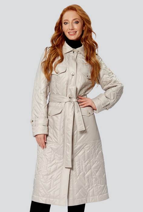 Стильное, универсальное пальто полуприталенного силуэта комфортной длины от российского производителя D’imma Fashion Studio из ткани с водоотталкивающей пропиткой отражает тренд на сдержанность и лаконичность. Модель с модными в этом сезоне накладными настрочными карманами с клапанами и отложным воротником на стойке. На плечах погоны. По переду и спинке отрезная кокетка. На полочке на кокетке накладные декоративные клапаны. На рукавах паты. Погоны, паты и клапаны декорированы пуговицами. Пояс модной средней ширины в комплекте. Декоративная, фигурная стежка по пальто делает его интересным и модным. Пальто можно дополнять яркими аксессуарами и менять образ под настроение.