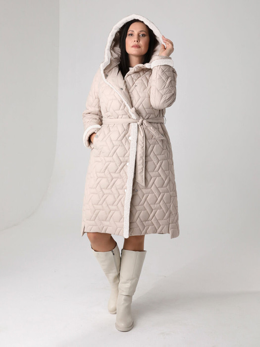 Стильное зимнее пальто прямого силуэта с модными акцентами в виде разноуровневой линии низа, актуальной стежки и отделки из искусственного меха украсит гардероб девушек и женщин разных возрастных категорий. Прямой силуэт этого стеганого пальто средней длины можно скорректировать с помощью съемного завязывающегося пояса. Длину втачных рукавов можно регулировать отворотом. Застежка - на кнопки. Несъемный капюшон в застегнутом виде образует красивую стойку. Карманы, расположенные в рельефных швах, застегиваются на кнопки. Есть внутренний кармашек на молнии. Выбирайте понравившийся цвет и Вы, однозначно, будете стильной в этом стеганом пальто с актуальной меховой отделкой! Опушка не отстегивается, но хорошо стирается и не меняет свой красивый внешний вид после высыхания. Плащевая ткань имеет водоотталкивающую пропитку, которая выдержит небольшой дождь или снег. Хорошо зарекомендовавший себя утеплитель " Холлофайбер", плотностью 300 г/м, защитит от холода и ветра. Подкладка в изделии выполнена из ткани в мелкую по