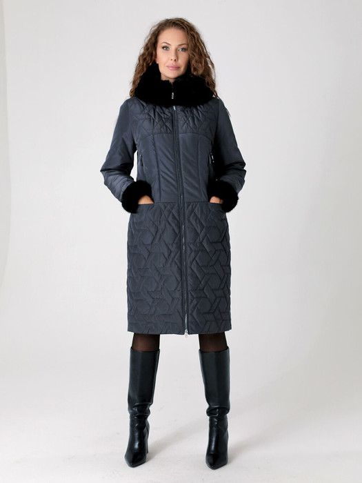 Элегантное зимнее пальто полуприлегающего силуэта средней длины подходит для девушек и женщин разной возрастной категории. Застежка - на двухзамковую тесьму молнию с внутренней ветрозащитной планкой. Отворот втачного рукава и отворот несъемного капюшона выполнены из шелковистого искусственного меха "под кролика"; опушка не отстегивается, но очень хорошо стирается и сохраняет свой красивый внешний вид! Две пары удобных карманов: верхние расположены в рельефных швах и застегиваются на молнию, нижние - в подрезе. В подкладке изделия имеется нагрудный потайной карман на молнии. Плащевая ткань, из которой выполнено изделие, имеет водоотталкивающую пропитку, выдерживающую небольшой дождь, снег и ветер. Хорошо зарекомендовавший себя утеплитель " Холлофайбер", плотностью 300гр/м, защитит от холода. Подкладка в изделии выполнена из ткани в мелкую полоску.