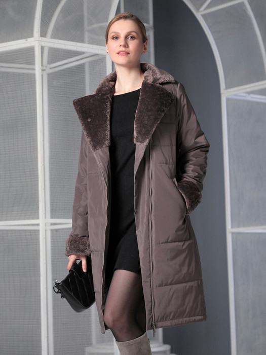Демисезонное пальто средней длины прямого силуэта  подходит для женщин и девушек любого возраста. Ассиметричная застежка на двухзамковую молнию позволяет расстегнуть пальто как сверху, так и снизу, что актуально для корректировки ширины шага и при  подъеме по лестнице.  Удобно расположенные прорезные карманы  застегиваются на кнопку. Низ втачного рукава и воротник "английского" типа с лацканами выполнены из мягкого эко-меха, который хорошо стирается на рекомендованном режиме и не меняет свой внешний вид после высыхания. Плащевая ткань имеет водоотталкивающую пропитку, которая выдержит небольшой осенний дождь или снег. Хорошо зарекомендовавший себя утеплитель "Холлофайбер", плотностью 150 гр/м, защитит от холода и ветра. Подкладка в изделии - в мелкую полоску. Выбирайте понравившийся цвет, добавьте  аксессуары и наслаждайтесь стильной и комфортной осенью!