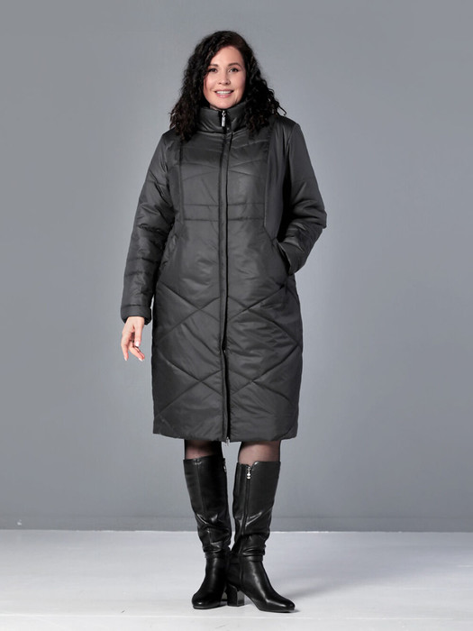 Демисезонное пальто полуприлегающего силуэта   подойдет для женщин и девушек любого возраста. Застежка - на двухзамковую молнию, что позволяет легко расстегнуть ее как сверху, так и снизу. Воротник - стойка, переходящая в капюшон. Длину втачного рукава можно регулировать отворотом. Прорезные карманы застегиваются на кнопки. Есть внутренний кармашек на молнии. Это элегантное пальто выручит Вас поздней осенью и ранней весной. Плащевая ткань имеет водоотталкивающую пропитку, которая выдержит небольшой дождь и легкий ветер. Хорошо зарекомендовавший себя утеплитель Холлофайбер, плотностью 150 гр/м, защитит от холода. Подкладка в изделии - в мелкую полоску. Рекомендации по температурному режиму представлены в характеристиках, но следует учитывать индивидуальные особенности.