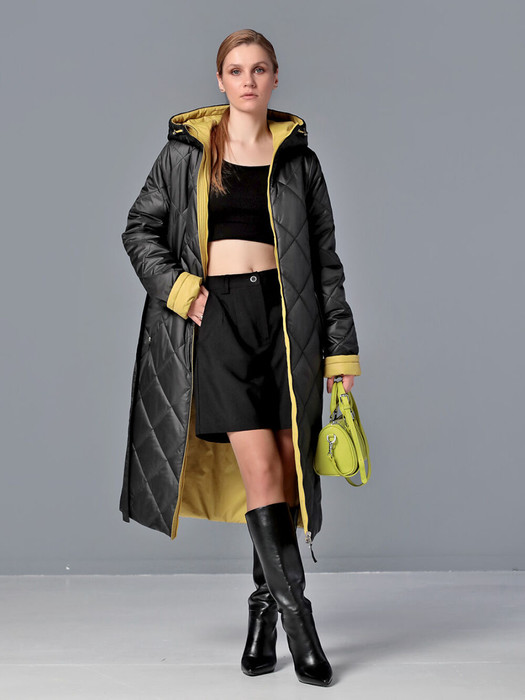 Стильное двухстороннее пальто прямого силуэта с застежкой на двухзамковую молнию, которая позволяет расстегнуть пальто как сверху, так и снизу, регулируя тем самым ширину шага по необходимости. Воротник - стойка, переходящая в регулируемый капюшон. В варианте "стеганого" верха прорезные карманы застегиваются на молнию, в случае "гладкой" стороны - карманы накладные. При желании линию талии можно подчеркнуть съемным поясом. Длина втачного рукава корректируется отворотом. Модель такого демисезонного пальто подходит для девушек и женщин разной возрастной категории, оно хорошо садится на любую фигуру. Плащевая ткань, из которой выполнено пальто, имеет водоотталкивающую пропитку, выдерживающую небольшой дождь, снег и ветер. Хорошо зарекомендовавший себя утеплитель "Холлофайбер", плотностью 250гр/м, защитит от холода. Выбирайте понравившееся сочетание цветов, меняйте аксессуары и обувь, и это пальто станет любимой вещью в Вашем гардеробе! Пусть осень будет не только комфортной, но и стильной!