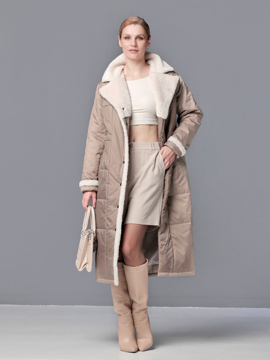 Стильное длинное пальто прямого силуэта с ассиметричной застежкой на кнопки. Это демисезонное пальто подходит для женщин и девушек любого возраста. Свободный силуэт можно легко изменить с помощью внутренней кулиски, подчеркнув тем самым линию талии. Воротник - по типу "английского" с возможностью фиксации лацкана на пуговицу. Удобно расположенные прорезные карманы застегиваются на кнопку. Низ втачного рукава, край борта и воротник с лацканами выполнены из мягкого эко-меха, который хорошо стирается на рекомендованном режиме и не меняет свой внешний вид после высыхания. Плащевая ткань имеет водоотталкивающую пропитку, которая выдержит небольшой осенний дождь или снег. Хорошо зарекомендовавший себя утеплитель Холлофайбер плотностью 150 гр/м защитит от холода и ветра. Подкладка в изделии - в мелкую полоску. Выбирайте понравившийся цвет, подбирайте аксессуары, и Ваша осень будет стильной и комфортной!