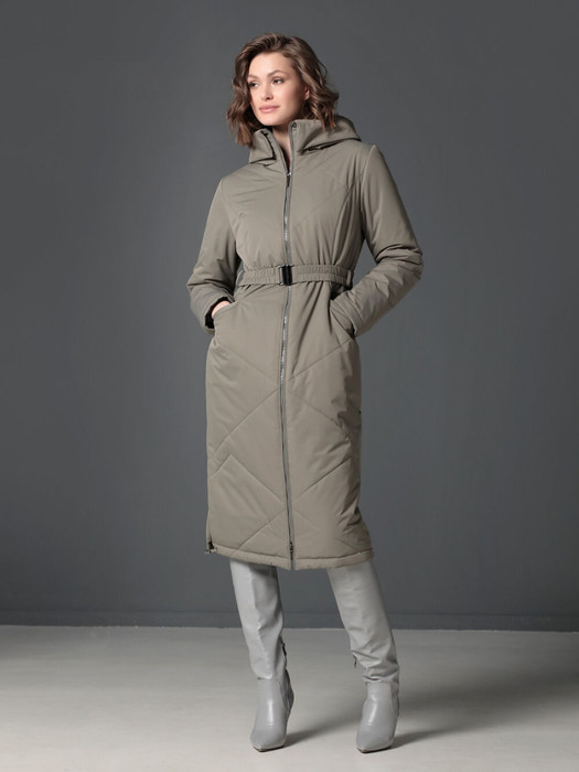 Длинное демисезонное пальто полуприлегающего силуэта с втачными рукавами и разрезами по бокам. Застежка на двухзамковую молнию позволяет расстегнуть пальто как сверху, так и снизу, что актуально при такой длине изделия для корректировки ширины шага и при  подъеме по лестнице. Воротник - стойка, переходящая в капюшон. Прорезные карманы с декоративными лИсточками удобно расположены в рельефных швах. При желании линию талии можно акцентировать съемным эластичным поясом на защелке.  Плащевая ткань имеет водоотталкивающую пропитку, которая выдержит небольшой осенний дождь или снег. Хорошо зарекомендовавший себя утеплитель  Холлофайбер, плотностью 150 гр/м, защитит от холода и  ветра. Подкладка в изделии выполнена из качественной ткани точно в цвет верха. Фантазируйте с аксессуарами, и Ваша осень будет стильной и комфортной!