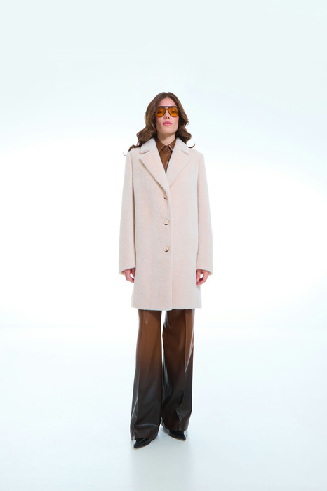 Пальто женское демисезонное, однобортное, прямого силуэта длиной ниже колена. Застежка на петли и пуговицы. Перед с функциональными карманами в рельефе. Рукав длинный, двухшовный. Воротник и лацкана отложные. Пальто со съемным поясом.