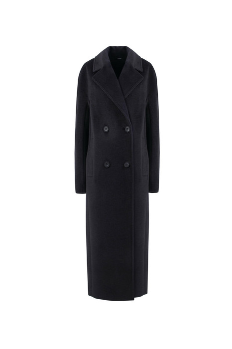 Пальто женское демисезонное, двубортное, прямого силуэта длиной ниже колена, на подкладке. Застежка двубортная на 2 пары рабочих пуговицы и петли. По переду карман с листочкой. По спинке в нижней части среднего шва отлетная шлица. Рукав длинный, комбинированный, с ластовицей. Воротник и лацкана отложные. По воротнику, лацканам, бортам, листочкам отделочная строчка - имитация ручного стежка.