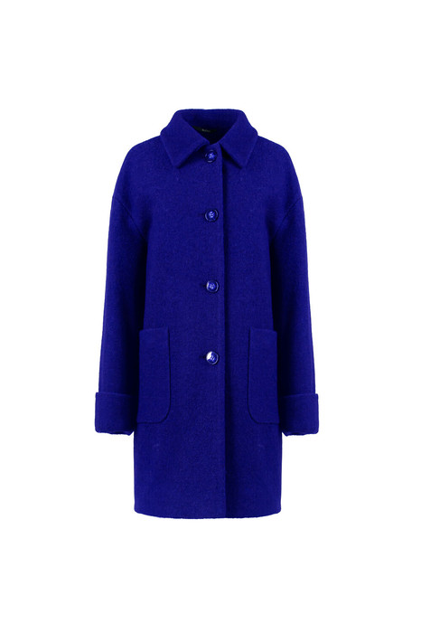 Пальто женское демисезонное, однобортное, прямого силуэта, длиной выше колена, на подкладке. Застежка до верха на петли и пуговицы. Воротник отложной. Перед с накладными карманами. Линия плеча спущена. Рукава с отложными манжетами.