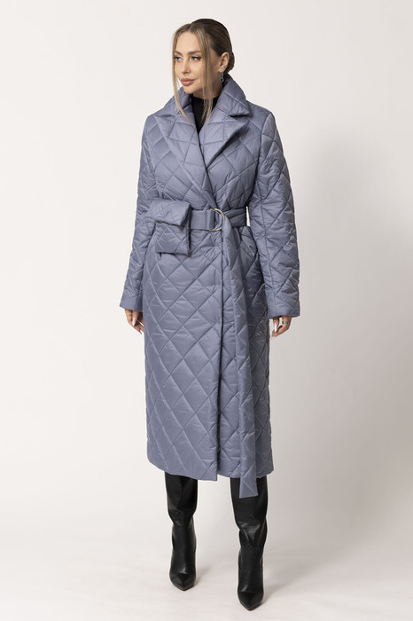 Пальто утепленное с центральной двубортной застежкой на пришивные кнопки, отложным воротником и лацканами. В боковых швах- карманы. Спинка цельная.. Рукав втачной, двухшовный. Пальто со съемным поясом и декоративной сумочкой.