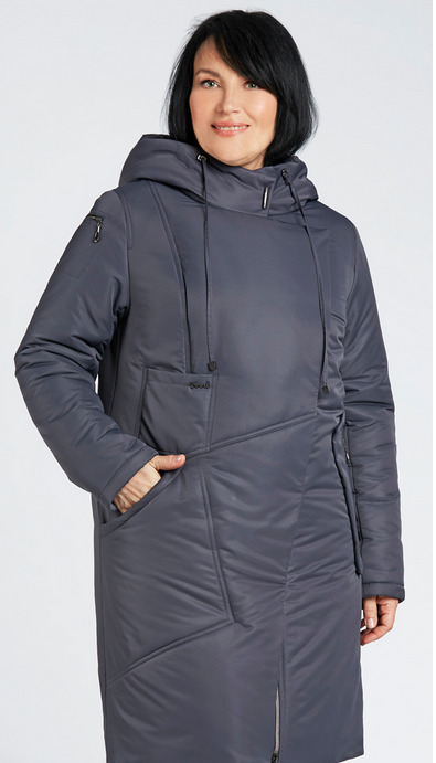 Тёплое пальто в спортивном стиле с капюшоном, асимметричной застёжкой молнией и кнопках. Интересные футуристичные карманы подчёркивают стиль.