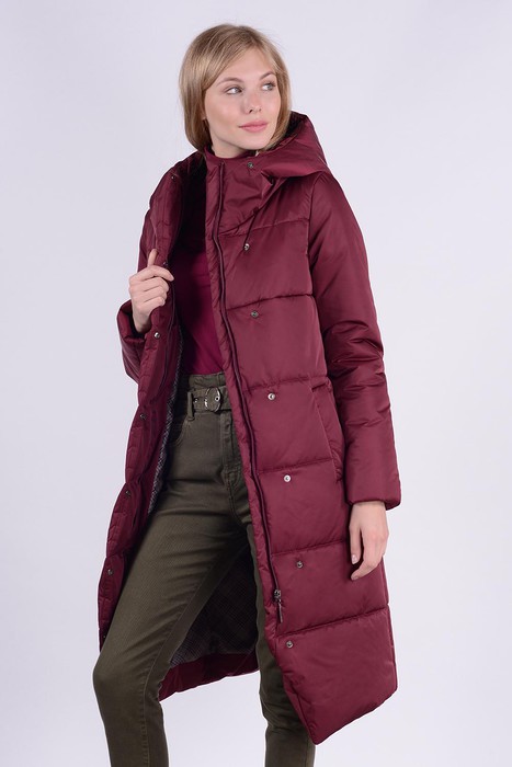 Стильное зимнее женское полупальто с застежкой на молнию и воротником, переходящим в капюшон. Силуэт прямой, линия низа фигурная.Удобные прорезные карманы с листочкой. Модель выполнена из нового вида ткани с умеренной плотностью , которая хорошо держит форму, износоустойчива и неприхотлива в чистке.Для защиты от ветра и мороза рукава по низу дополнены внутренними трикотажными манжетами.В изделии использована система утепления Air Twin (от 0 °С до -20 °С). Длина пальто по спинке ок.103см. Длина рукава ок.65 см. Рост 170 см Состав: полиэстер - 100%, утеплитель: Air Twin 200 г/m 2 Цвет: бордо Цвет одежды на фото может незначительно отличаться от оригинала.